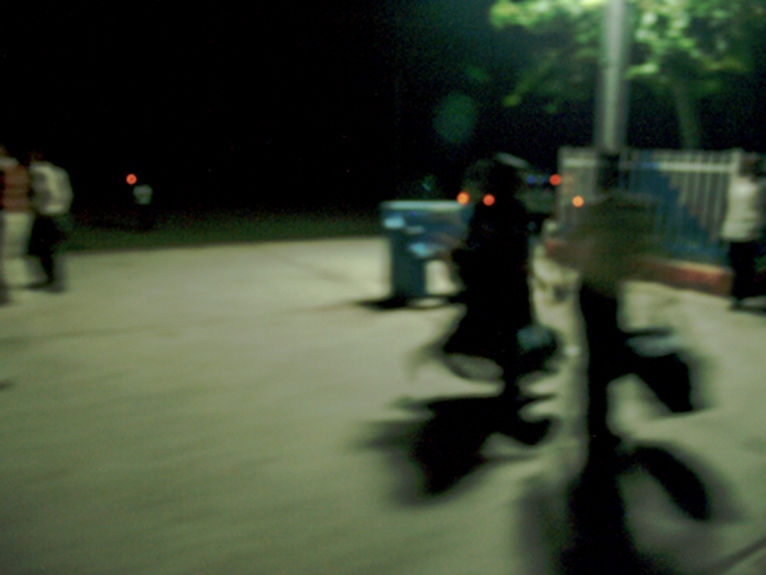I had barely taken any photos in Varanasi due to fever and cramps, was still too weak to walk around the crowded and jolting train with a camera, so I photographed the only things I was strong enough to accomplish: leaning in front of the very patient family every so often to stick my camera up to the horizontal bars of the window, but especially when we pulled into tiny, nearly desolate stops in the middle of the night, to snap a photo of India and its denizens of the night streaking by. For me, the colors and the flowing clothes of the people on the